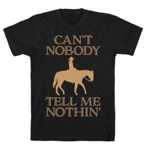 “Can’t Nobody Tell Me Nothin'” cowboy design.