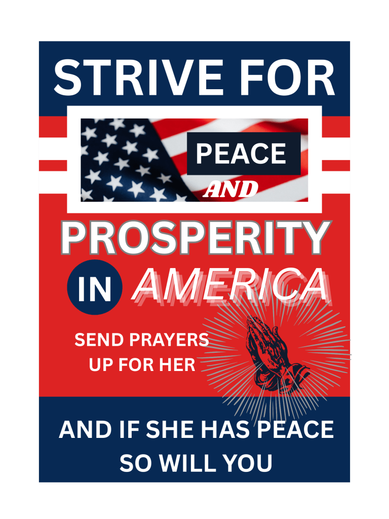 “Strive for peace and prosperity in America. Send prayers for her, and if she has peace, so will you.”